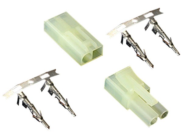Комплект из трех разъемов типа Large Tamiya для подключения аккумуляторов к страйкбольным приводам, зарядным устройствам. В составе каждого разъема пластиковые корпуса "папа" и "мама", по два металлических контакта.